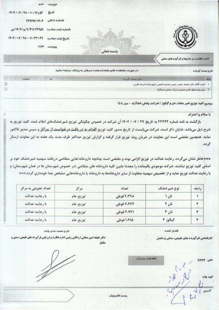 خانه>کلید توزیع دارو های کمیاب>کلید توزیع شیرخشک نان و گیگوز شرکت پخش شفاآراد – مهر ۱۴۰۴ کلید توزیع دارو های کمیاب کلید توزیع شیرخشک نان و گیگوز شرکت پخش شفاآراد – مهر ۱۴۰۴ علی رشیدی۳۰ مهر ۱۴۰۴ 26 کمتر از یک دقیقه واتس آپ اشتراک گذاری از طریق ایمیل چاپ علی رشیدی۳۰ مهر ۱۴۰۴ 26 کمتر از یک دقیقه واتس آپ اشتراک گذاری از طریق ایمیل چاپ