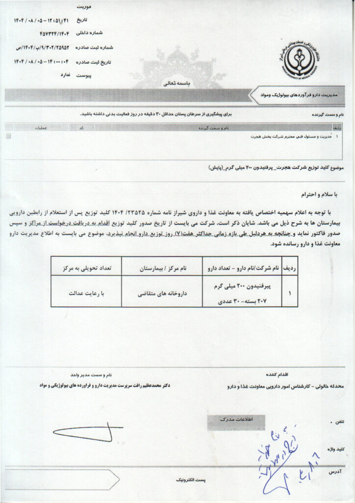 خانه>کلید توزیع دارو های کمیاب>کلید توزیع پیرفنیدون ۲۰۰ میلی گرم شرکت پخش هجرت کلید توزیع دارو های کمیاب کلید توزیع پیرفنیدون ۲۰۰ میلی گرم شرکت پخش هجرت علی رشیدی۷ آبان ۱۴۰۴ 17 کمتر از یک دقیقه واتس آپ اشتراک گذاری از طریق ایمیل چاپ علی رشیدی۷ آبان ۱۴۰۴ 17 کمتر از یک دقیقه واتس آپ اشتراک گذاری از طریق ایمیل چاپ