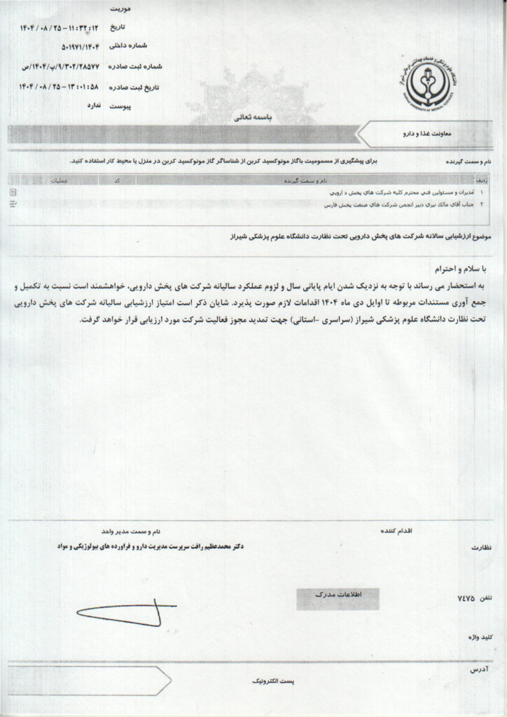 خانه>اطلاعیه های مهم>اطلاعیه دانشگاه علوم پزشکی شیراز در خصوص ارزشیابی سالانه شرکت های پخش دارویی تحت نظارت آن دانشگاه اطلاعیه های مهمدانشگاه علوم پزشکی شیراز اطلاعیه دانشگاه علوم پزشکی شیراز در خصوص ارزشیابی سالانه شرکت های پخش دارویی تحت نظارت آن دانشگاه علی رشیدی۲۸ آبان ۱۴۰۴ 33 کمتر از یک دقیقه واتس آپ اشتراک گذاری از طریق ایمیل چاپ علی رشیدی۲۸ آبان ۱۴۰۴ 33 کمتر از یک دقیقه واتس آپ اشتراک گذاری از طریق ایمیل چاپ