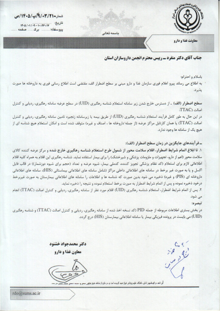 خانه>دانشگاه علوم پزشکی شیراز>اطلاعیه دانشگاه علوم پزشکی شیراز در خصوص نحوه استعلام شناسه رهگیری کالای سلامت محور در زمان اضطرار دانشگاه علوم پزشکی شیراز اطلاعیه دانشگاه علوم پزشکی شیراز در خصوص نحوه استعلام شناسه رهگیری کالای سلامت محور در زمان اضطرار علی رشیدی۱۶ فروردین ۱۴۰۵ 20 کمتر از یک دقیقه واتس آپ اشتراک گذاری از طریق ایمیل چاپ علی رشیدی۱۶ فروردین ۱۴۰۵ 20 کمتر از یک دقیقه واتس آپ اشتراک گذاری از طریق ایمیل چاپ
