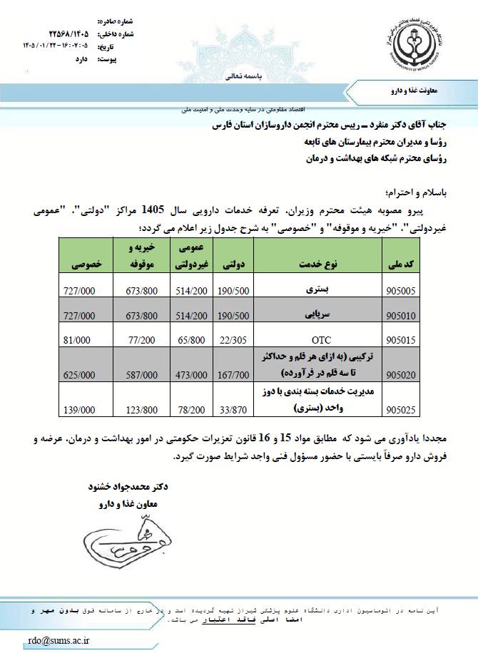 خانه>اطلاعیه های مهم>تعرفه خدمات داروئی سال ۱۴۰۵ مراکز دولتی، عمومی غیردولتی، خیریه و موقوفه و بخش خصوصی اطلاعیه های مهمدانشگاه علوم پزشکی شیراز تعرفه خدمات داروئی سال ۱۴۰۵ مراکز دولتی، عمومی غیردولتی، خیریه و موقوفه و بخش خصوصی علی رشیدی۲۳ فروردین ۱۴۰۵ 74 کمتر از یک دقیقه واتس آپ اشتراک گذاری از طریق ایمیل چاپ علی رشیدی۲۳ فروردین ۱۴۰۵ 74 کمتر از یک دقیقه واتس آپ اشتراک گذاری از طریق ایمیل چاپ