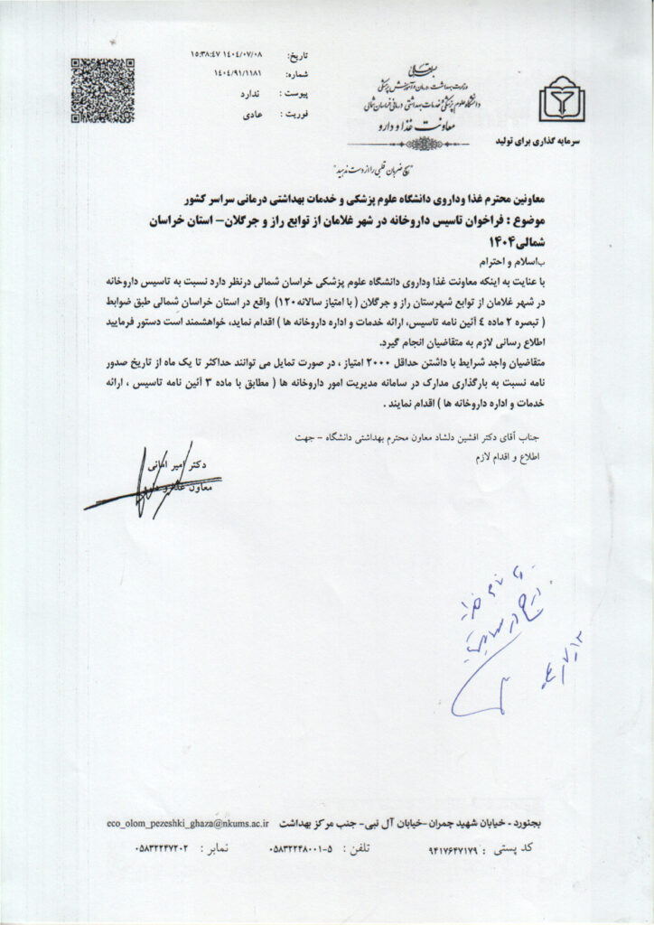 خانه>دانشگاه علوم پزشکی شیراز>فراخوان تأسیس داروخانه در شهر غلامان از توابع شهرستان راز و جرگلان استان خراسان شمالی دانشگاه علوم پزشکی شیراز فراخوان تأسیس داروخانه در شهر غلامان از توابع شهرستان راز و جرگلان استان خراسان شمالی علی رشیدی۱۲ مهر ۱۴۰۴ 10 کمتر از یک دقیقه واتس آپ اشتراک گذاری از طریق ایمیل چاپ علی رشیدی۱۲ مهر ۱۴۰۴ 10 کمتر از یک دقیقه واتس آپ اشتراک گذاری از طریق ایمیل چاپ