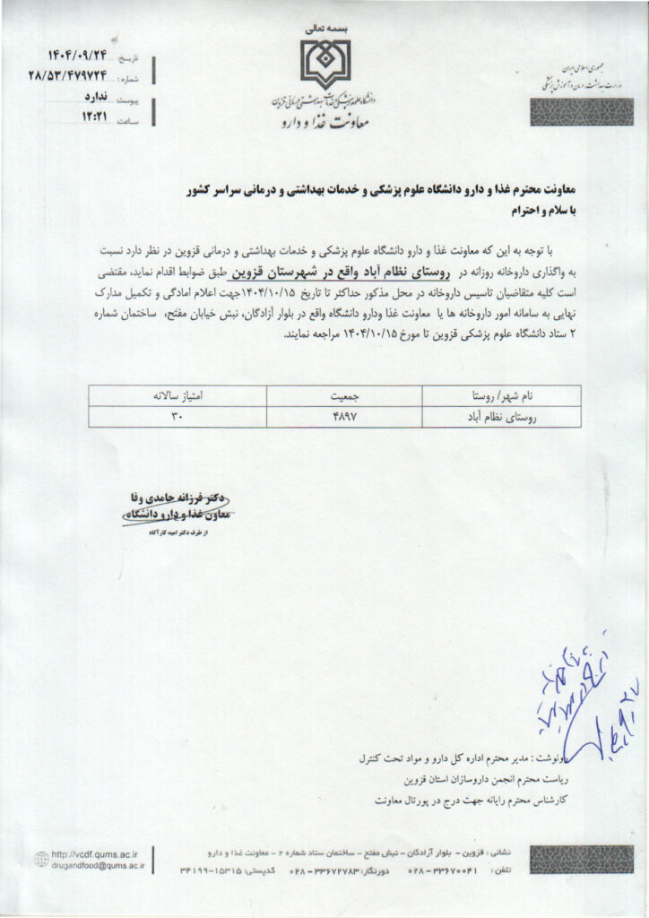 خانه>دانشگاه علوم پزشکی شیراز>فراخوان تاسیس داروخانه در روستای نظام آباد واقع در شهرستان قزوین دانشگاه علوم پزشکی شیراز فراخوان تاسیس داروخانه در روستای نظام آباد واقع در شهرستان قزوین علی رشیدی۲۷ آذر ۱۴۰۴ 9 کمتر از یک دقیقه واتس آپ اشتراک گذاری از طریق ایمیل چاپ علی رشیدی۲۷ آذر ۱۴۰۴ 9 کمتر از یک دقیقه واتس آپ اشتراک گذاری از طریق ایمیل چاپ
