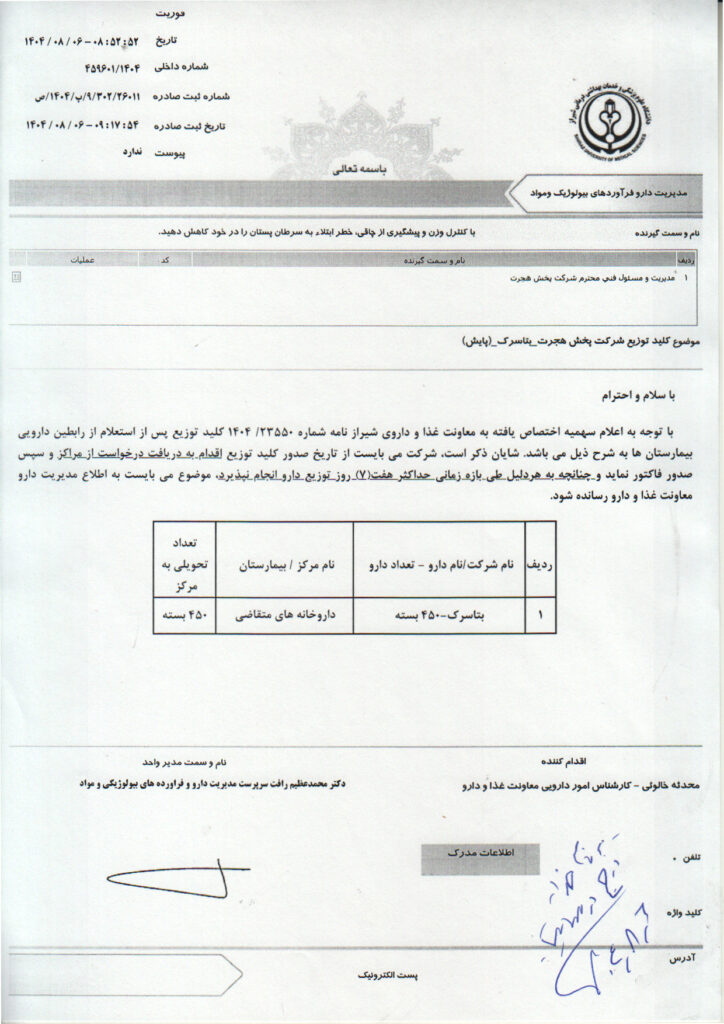 خانه>کلید توزیع دارو های کمیاب>کلید توزیع بتاسرک شرکت پخش هجرت کلید توزیع دارو های کمیاب کلید توزیع بتاسرک شرکت پخش هجرت علی رشیدی۷ آبان ۱۴۰۴ 1 کمتر از یک دقیقه واتس آپ اشتراک گذاری از طریق ایمیل چاپ علی رشیدی۷ آبان ۱۴۰۴ 1 کمتر از یک دقیقه واتس آپ اشتراک گذاری از طریق ایمیل چاپ