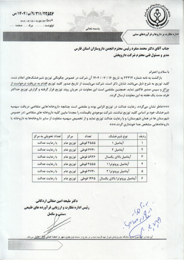 کلید توزیع شیرخشک آپتامیل شرکت داروپخش ۱