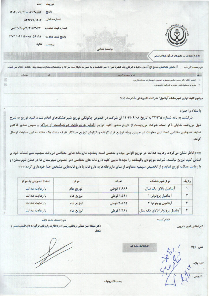 خانه>کلید توزیع دارو های کمیاب>کلید توزیع شیرخشک آپتامیل شرکت داروپخش – آذر ۱۴۰۴ کلید توزیع دارو های کمیاب کلید توزیع شیرخشک آپتامیل شرکت داروپخش – آذر ۱۴۰۴ علی رشیدی۱۲ آذر ۱۴۰۴ 6 کمتر از یک دقیقه واتس آپ اشتراک گذاری از طریق ایمیل چاپ علی رشیدی۱۲ آذر ۱۴۰۴ 6 کمتر از یک دقیقه واتس آپ اشتراک گذاری از طریق ایمیل چاپ