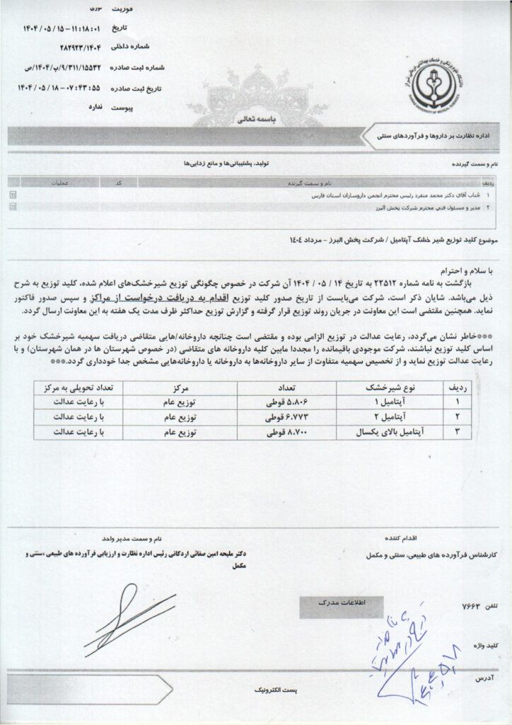 خانه>کلید توزیع دارو های کمیاب>کلید توزیع شیرخشک آپتامیل شرکت پخش البرز – مرداد ۱۴۰۴ کلید توزیع دارو های کمیاب کلید توزیع شیرخشک آپتامیل شرکت پخش البرز – مرداد ۱۴۰۴ علی رشیدی۱۸ مرداد ۱۴۰۴۰ 20 کمتر از یک دقیقه واتس آپ اشتراک گذاری از طریق ایمیل چاپ علی رشیدی۱۸ مرداد ۱۴۰۴۰ 20 کمتر از یک دقیقه واتس آپ اشتراک گذاری از طریق ایمیل چاپ