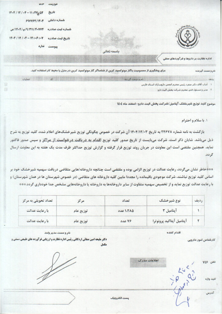 خانه>کلید توزیع دارو های کمیاب>کلید توزیع شیرخشک آپتامیل شرکت پخش الیت دارو – اسفند ماه ۱۴۰۴ کلید توزیع دارو های کمیاب کلید توزیع شیرخشک آپتامیل شرکت پخش الیت دارو – اسفند ماه ۱۴۰۴ علی رشیدی۶ اسفند ۱۴۰۴ 12 کمتر از یک دقیقه واتس آپ اشتراک گذاری از طریق ایمیل چاپ علی رشیدی۶ اسفند ۱۴۰۴ 12 کمتر از یک دقیقه واتس آپ اشتراک گذاری از طریق ایمیل چاپ