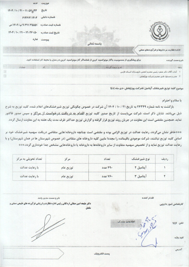 خانه>کلید توزیع دارو های کمیاب>کلید توزیع شیرخشک آپتامیل شرکت پوراپخش – دی ماه ۱۴۰۴ کلید توزیع دارو های کمیاب کلید توزیع شیرخشک آپتامیل شرکت پوراپخش – دی ماه ۱۴۰۴ علی رشیدی۲۳ دی ۱۴۰۴ 25 کمتر از یک دقیقه واتس آپ اشتراک گذاری از طریق ایمیل چاپ علی رشیدی۲۳ دی ۱۴۰۴ 25 کمتر از یک دقیقه واتس آپ اشتراک گذاری از طریق ایمیل چاپ