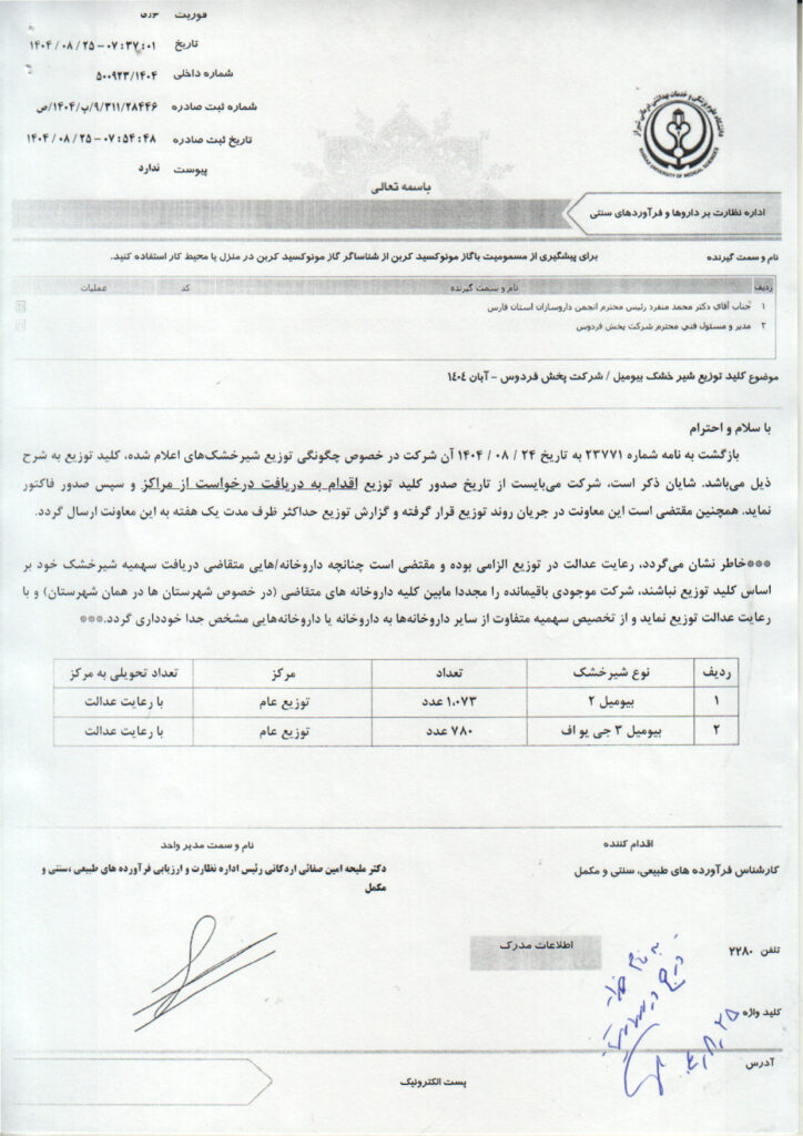 خانه>کلید توزیع دارو های کمیاب>کلید توزیع شیرخشک بیومیل شرکت پخش فردوس – آبان ۱۴۰۴ کلید توزیع دارو های کمیاب کلید توزیع شیرخشک بیومیل شرکت پخش فردوس – آبان ۱۴۰۴ علی رشیدی۲۵ آبان ۱۴۰۴ 70 کمتر از یک دقیقه واتس آپ اشتراک گذاری از طریق ایمیل چاپ علی رشیدی۲۵ آبان ۱۴۰۴ 70 کمتر از یک دقیقه واتس آپ اشتراک گذاری از طریق ایمیل چاپ