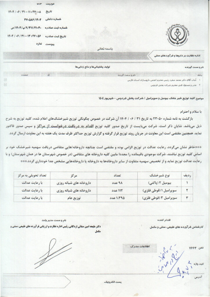 خانه>کلید توزیع دارو های کمیاب>کلید توزیع شیرخشک بیومیل و سوپرامیل شرکت پخش فردوس – شهریور ۱۴۰۴ کلید توزیع دارو های کمیاب کلید توزیع شیرخشک بیومیل و سوپرامیل شرکت پخش فردوس – شهریور ۱۴۰۴ علی رشیدی۲ مهر ۱۴۰۴ 3 کمتر از یک دقیقه واتس آپ اشتراک گذاری از طریق ایمیل چاپ علی رشیدی۲ مهر ۱۴۰۴ 3 کمتر از یک دقیقه واتس آپ اشتراک گذاری از طریق ایمیل چاپ
