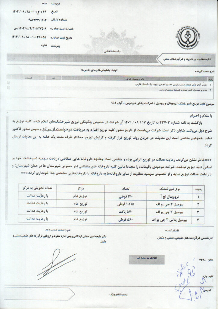خانه>کلید توزیع دارو های کمیاب>کلید توزیع شیرخشک تروویتال و بیومیل شرکت پخش فردوس – آبان ۱۴۰۴ کلید توزیع دارو های کمیاب کلید توزیع شیرخشک تروویتال و بیومیل شرکت پخش فردوس – آبان ۱۴۰۴ علی رشیدی۱۹ آبان ۱۴۰۴ 1 کمتر از یک دقیقه واتس آپ اشتراک گذاری از طریق ایمیل چاپ علی رشیدی۱۹ آبان ۱۴۰۴ 1 کمتر از یک دقیقه واتس آپ اشتراک گذاری از طریق ایمیل چاپ