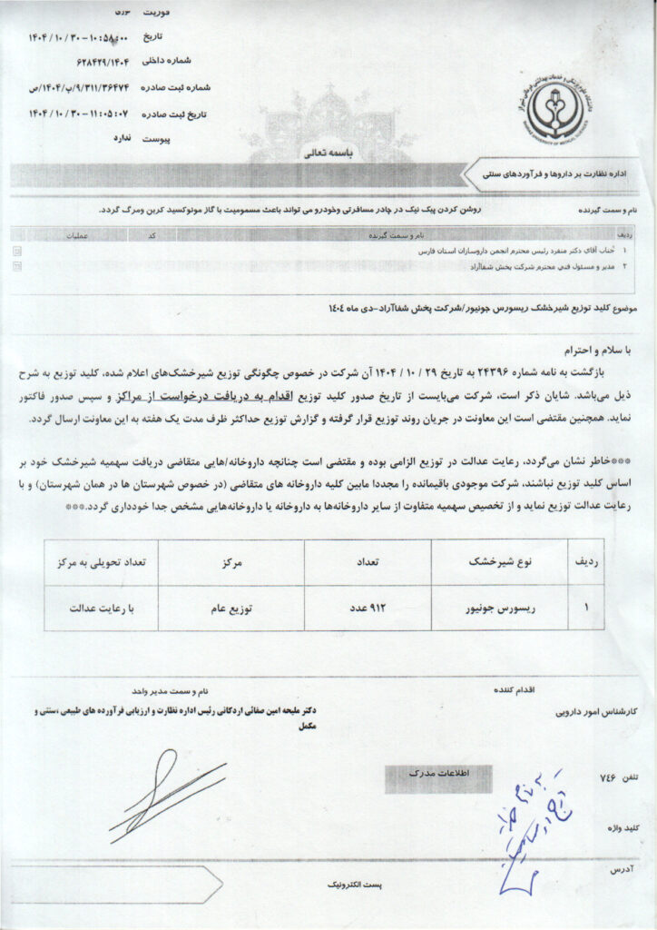 خانه>کلید توزیع دارو های کمیاب>کلید توزیع شیرخشک ریسورس جونیور شرکت پخش شفاآراد – دی ماه ۱۴۰۴ کلید توزیع دارو های کمیاب کلید توزیع شیرخشک ریسورس جونیور شرکت پخش شفاآراد – دی ماه ۱۴۰۴ علی رشیدی۱ بهمن ۱۴۰۴ 38 کمتر از یک دقیقه واتس آپ اشتراک گذاری از طریق ایمیل چاپ علی رشیدی۱ بهمن ۱۴۰۴ 38 کمتر از یک دقیقه واتس آپ اشتراک گذاری از طریق ایمیل چاپ