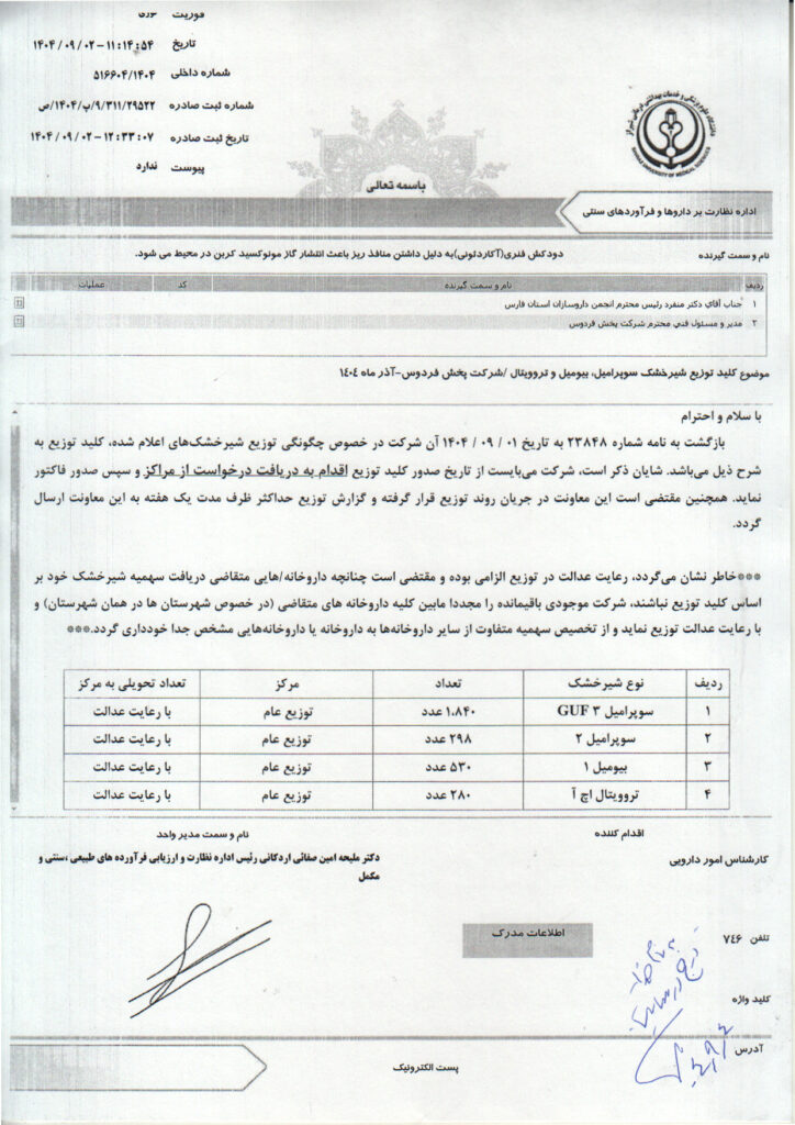 خانه>کلید توزیع دارو های کمیاب>کلید توزیع شیرخشک سوپرامیل، بیومیل و تروویتال شرکت پخش فردوس – آذر ۱۴۰۴ کلید توزیع دارو های کمیاب کلید توزیع شیرخشک سوپرامیل، بیومیل و تروویتال شرکت پخش فردوس – آذر ۱۴۰۴ علی رشیدی۴ آذر ۱۴۰۴ 3 کمتر از یک دقیقه واتس آپ اشتراک گذاری از طریق ایمیل چاپ علی رشیدی۴ آذر ۱۴۰۴ 3 کمتر از یک دقیقه واتس آپ اشتراک گذاری از طریق ایمیل چاپ