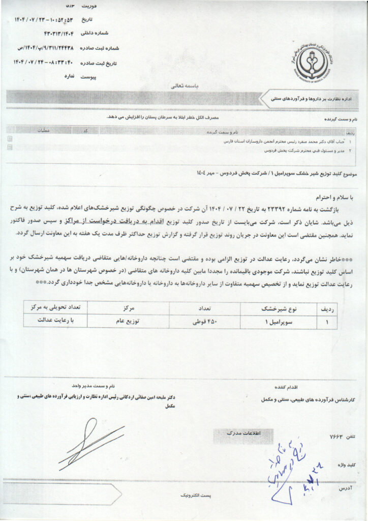خانه>کلید توزیع دارو های کمیاب>کلید توزیع شیرخشک سوپرامیل ۱ شرکت پخش فردوس – مهر ۱۴۰۴ کلید توزیع دارو های کمیاب کلید توزیع شیرخشک سوپرامیل ۱ شرکت پخش فردوس – مهر ۱۴۰۴ علی رشیدی۲۶ مهر ۱۴۰۴ 2 کمتر از یک دقیقه واتس آپ اشتراک گذاری از طریق ایمیل چاپ علی رشیدی۲۶ مهر ۱۴۰۴ 2 کمتر از یک دقیقه واتس آپ اشتراک گذاری از طریق ایمیل چاپ