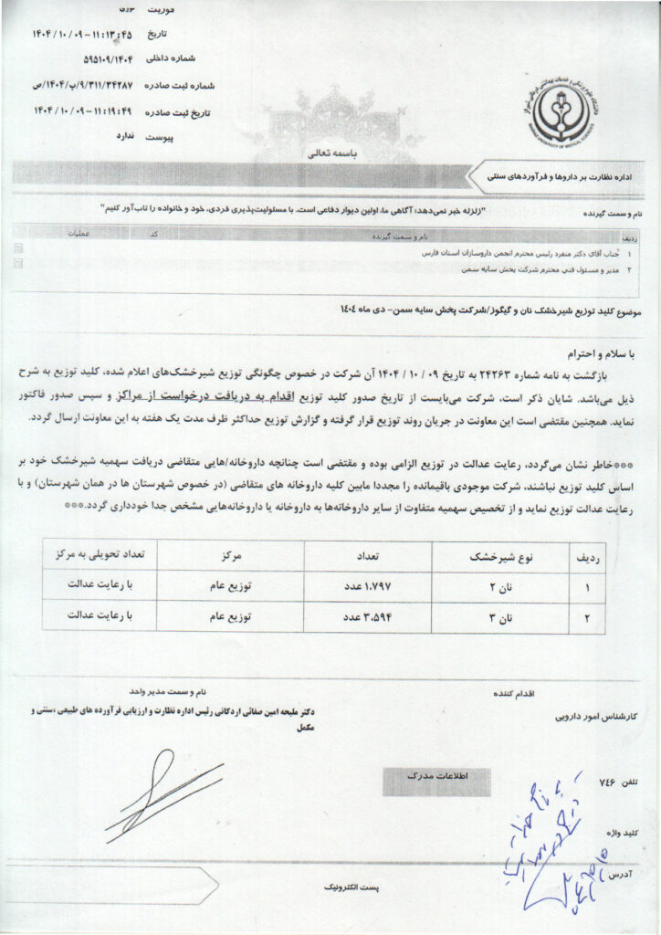 خانه>کلید توزیع دارو های کمیاب>کلید توزیع شیرخشک نان و گیگوز شرکت پخش سایه سمن – دی ماه ۱۴۰۴ کلید توزیع دارو های کمیاب کلید توزیع شیرخشک نان و گیگوز شرکت پخش سایه سمن – دی ماه ۱۴۰۴ علی رشیدی۱۰ دی ۱۴۰۴ 2 کمتر از یک دقیقه واتس آپ اشتراک گذاری از طریق ایمیل چاپ علی رشیدی۱۰ دی ۱۴۰۴ 2 کمتر از یک دقیقه واتس آپ اشتراک گذاری از طریق ایمیل چاپ