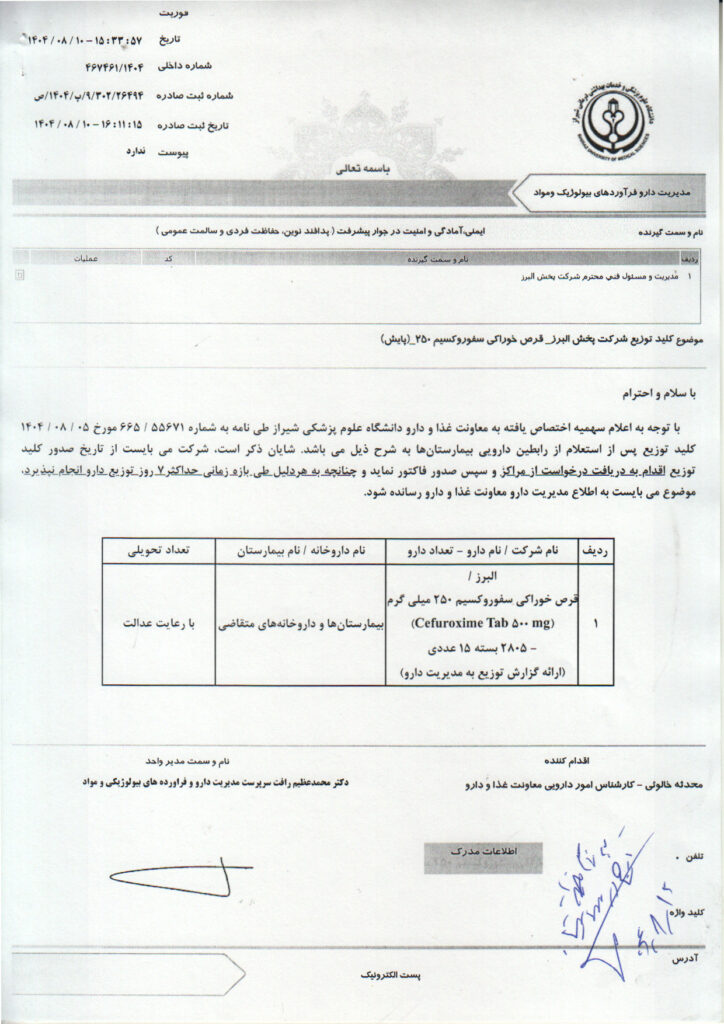 خانه>کلید توزیع دارو های کمیاب>کلید توزیع قرص خوراکی سفوروکسیم ۲۵۰ میلی گرم شرکت پخش البرز کلید توزیع دارو های کمیاب کلید توزیع قرص خوراکی سفوروکسیم ۲۵۰ میلی گرم شرکت پخش البرز علی رشیدی۱۲ آبان ۱۴۰۴ 1 کمتر از یک دقیقه واتس آپ اشتراک گذاری از طریق ایمیل چاپ علی رشیدی۱۲ آبان ۱۴۰۴ 1 کمتر از یک دقیقه واتس آپ اشتراک گذاری از طریق ایمیل چاپ