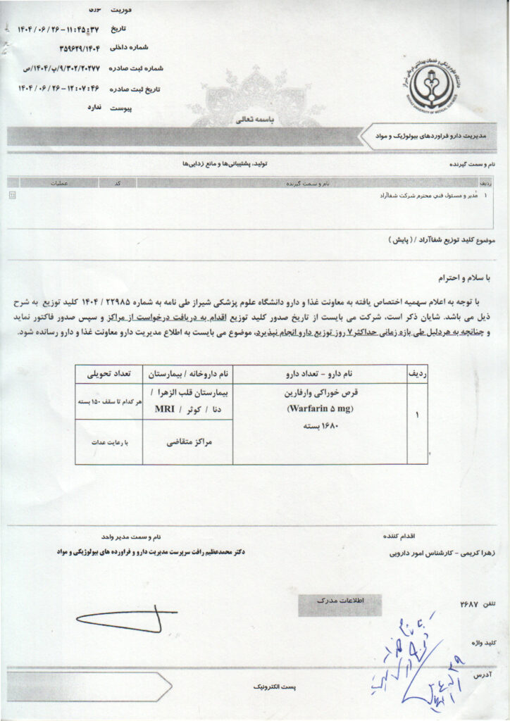 خانه>کلید توزیع دارو های کمیاب>کلید توزیع قرص خوراکی وارفارین شرکت پخش شفاآراد کلید توزیع دارو های کمیاب کلید توزیع قرص خوراکی وارفارین شرکت پخش شفاآراد علی رشیدی۲۹ شهریور ۱۴۰۴ 7 کمتر از یک دقیقه واتس آپ اشتراک گذاری از طریق ایمیل چاپ علی رشیدی۲۹ شهریور ۱۴۰۴ 7 کمتر از یک دقیقه واتس آپ اشتراک گذاری از طریق ایمیل چاپ