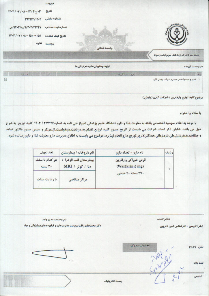 خانه>کلید توزیع دارو های کمیاب>کلید توزیع قرص خوراکی وارفارین ۵ میلی گرم شرکت کارن کلید توزیع دارو های کمیاب کلید توزیع قرص خوراکی وارفارین ۵ میلی گرم شرکت کارن علی رشیدی۱۰ مهر ۱۴۰۴ 3 کمتر از یک دقیقه واتس آپ اشتراک گذاری از طریق ایمیل چاپ علی رشیدی۱۰ مهر ۱۴۰۴ 3 کمتر از یک دقیقه واتس آپ اشتراک گذاری از طریق ایمیل چاپ