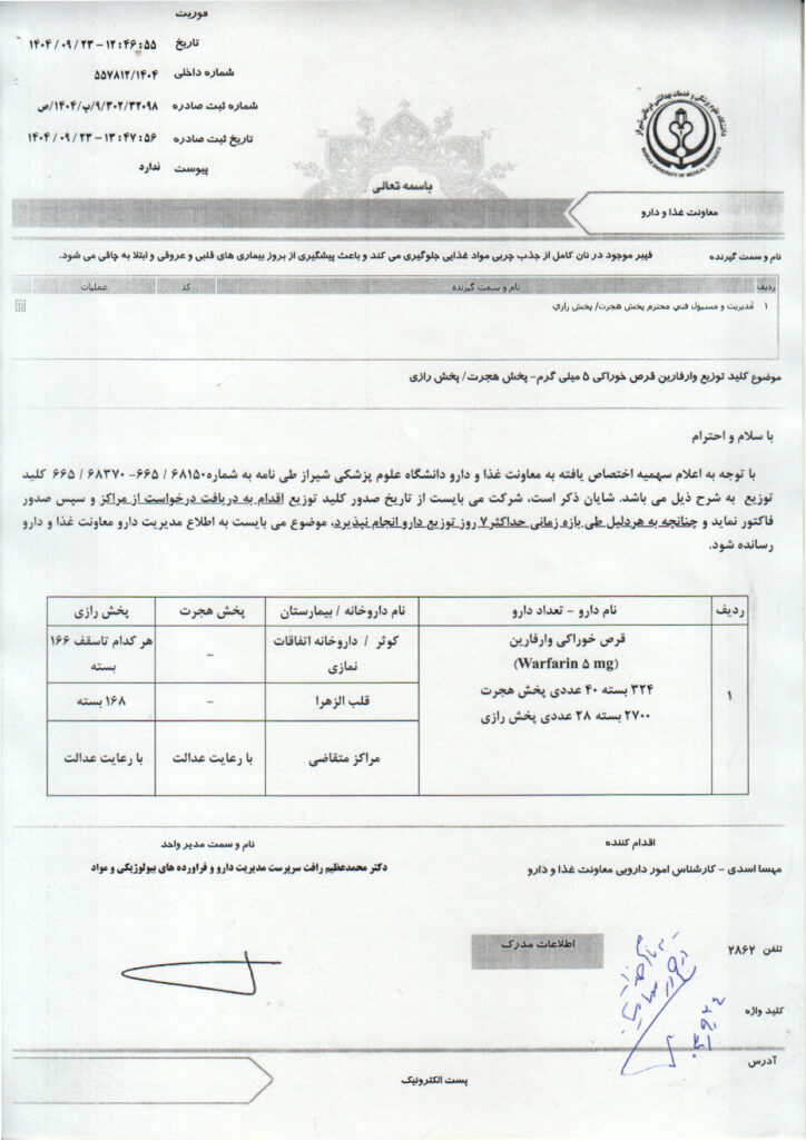 خانه>کلید توزیع دارو های کمیاب>کلید توزیع قرص خوراکی وارفارین ۵ میلی گرم شرکت های پخش هجرت و رازی کلید توزیع دارو های کمیاب کلید توزیع قرص خوراکی وارفارین ۵ میلی گرم شرکت های پخش هجرت و رازی علی رشیدی۲۴ آذر ۱۴۰۴ 7 کمتر از یک دقیقه واتس آپ اشتراک گذاری از طریق ایمیل چاپ علی رشیدی۲۴ آذر ۱۴۰۴ 7 کمتر از یک دقیقه واتس آپ اشتراک گذاری از طریق ایمیل چاپ