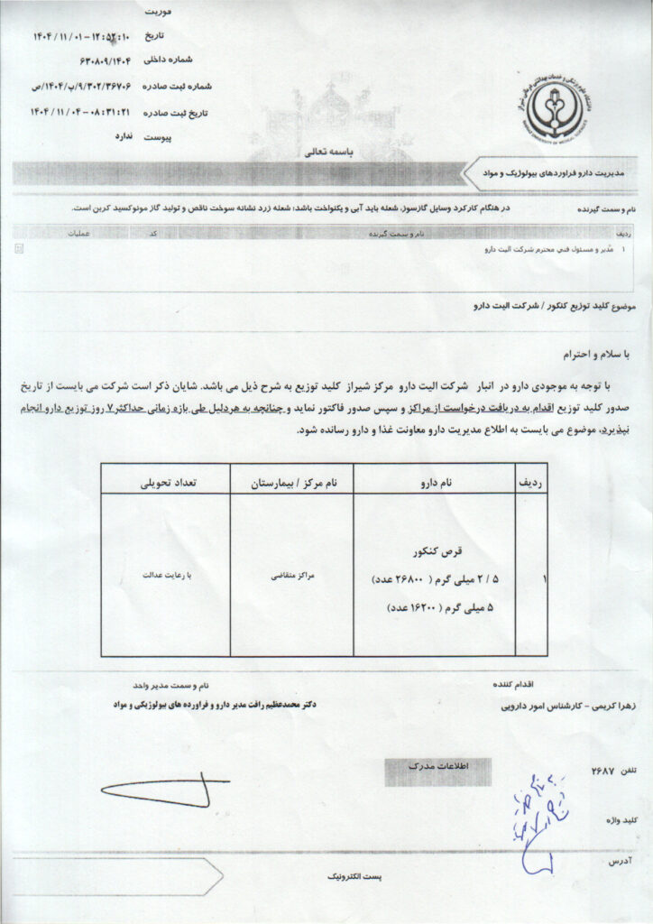 خانه>کلید توزیع دارو های کمیاب>کلید توزیع قرص کنکور۲/۵ و ۵ میلی گرم شرکت پخش الیت دارو کلید توزیع دارو های کمیاب کلید توزیع قرص کنکور۲/۵ و ۵ میلی گرم شرکت پخش الیت دارو علی رشیدی۵ بهمن ۱۴۰۴ 101 کمتر از یک دقیقه واتس آپ اشتراک گذاری از طریق ایمیل چاپ علی رشیدی۵ بهمن ۱۴۰۴ 101 کمتر از یک دقیقه واتس آپ اشتراک گذاری از طریق ایمیل چاپ