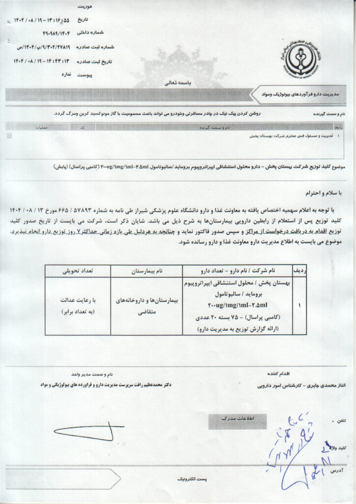 خانه>کلید توزیع دارو های کمیاب>کلید توزیع محلول استنشاقی ایپراتروپیوم بروماید/سالبوتامول (کامبی پراسال) کلید توزیع دارو های کمیاب کلید توزیع محلول استنشاقی ایپراتروپیوم بروماید/سالبوتامول (کامبی پراسال) علی رشیدی۲۱ آبان ۱۴۰۴ 3 کمتر از یک دقیقه واتس آپ اشتراک گذاری از طریق ایمیل چاپ علی رشیدی۲۱ آبان ۱۴۰۴ 3 کمتر از یک دقیقه واتس آپ اشتراک گذاری از طریق ایمیل چاپ