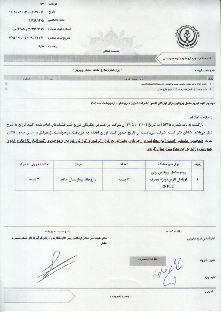 خانه>کلید توزیع>کلید توزیع مکمل پروتئین برای نوزادان نارس شرکت توزیع داروپخش – اردیبهشت ماه ۱۴۰۵ کلید توزیع کلید توزیع مکمل پروتئین برای نوزادان نارس شرکت توزیع داروپخش – اردیبهشت ماه ۱۴۰۵ علی رشیدی۶ اردیبهشت ۱۴۰۵ 14 کمتر از یک دقیقه واتس آپ اشتراک گذاری از طریق ایمیل چاپ علی رشیدی۶ اردیبهشت ۱۴۰۵ 14 کمتر از یک دقیقه واتس آپ اشتراک گذاری از طریق ایمیل چاپ