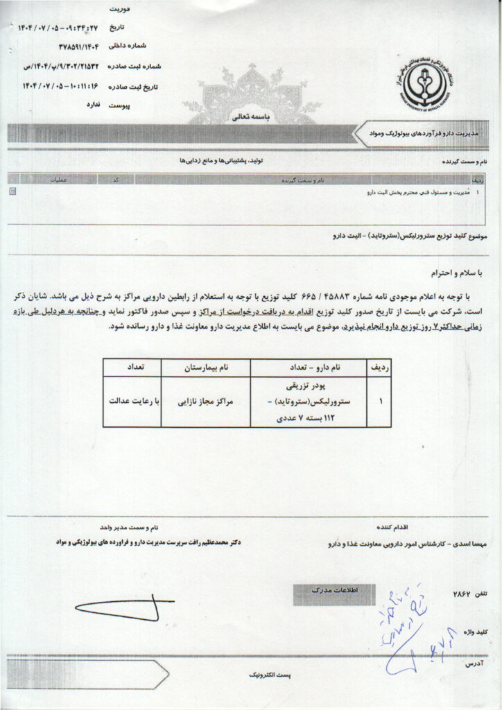 خانه>کلید توزیع دارو های کمیاب>کلید توزیع پودر تزریقی سترولیکس (ستروتاید) شرکت پخش الیت دارو کلید توزیع دارو های کمیاب کلید توزیع پودر تزریقی سترولیکس (ستروتاید) شرکت پخش الیت دارو علی رشیدی۱۲ مهر ۱۴۰۴ 18 کمتر از یک دقیقه واتس آپ اشتراک گذاری از طریق ایمیل چاپ علی رشیدی۱۲ مهر ۱۴۰۴ 18 کمتر از یک دقیقه واتس آپ اشتراک گذاری از طریق ایمیل چاپ