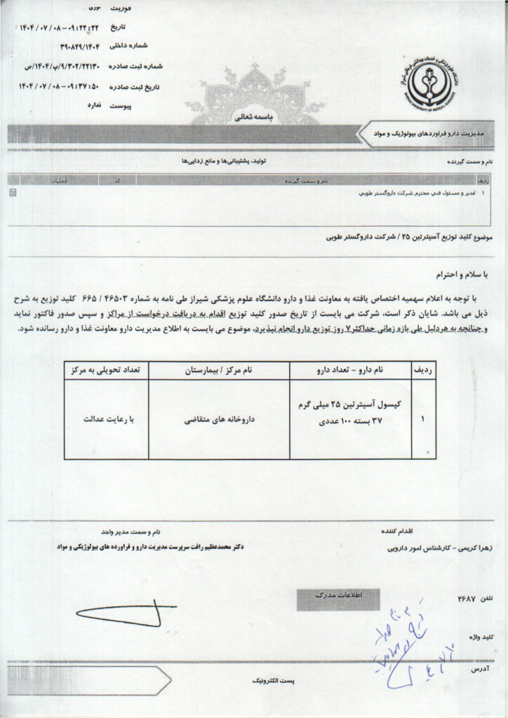 خانه>کلید توزیع دارو های کمیاب>کلید توزیع کپسول آسیترتین ۲۵ میلی گرم شرکت داروگستر طوبی کلید توزیع دارو های کمیاب کلید توزیع کپسول آسیترتین ۲۵ میلی گرم شرکت داروگستر طوبی علی رشیدی۱۰ مهر ۱۴۰۴ 1 کمتر از یک دقیقه واتس آپ اشتراک گذاری از طریق ایمیل چاپ علی رشیدی۱۰ مهر ۱۴۰۴ 1 کمتر از یک دقیقه واتس آپ اشتراک گذاری از طریق ایمیل چاپ