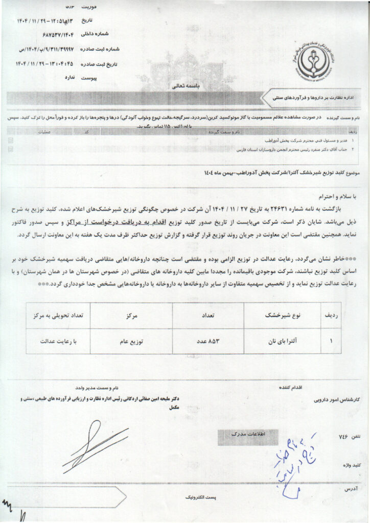خانه>کلید توزیع دارو های کمیاب>کلید تویع شیرخشک آلترا شرکت پخش آدوراطب – بهمن ماه ۱۴۰۴ کلید توزیع دارو های کمیاب کلید تویع شیرخشک آلترا شرکت پخش آدوراطب – بهمن ماه ۱۴۰۴ علی رشیدی۳ اسفند ۱۴۰۴ 5 کمتر از یک دقیقه واتس آپ اشتراک گذاری از طریق ایمیل چاپ علی رشیدی۳ اسفند ۱۴۰۴ 5 کمتر از یک دقیقه واتس آپ اشتراک گذاری از طریق ایمیل چاپ